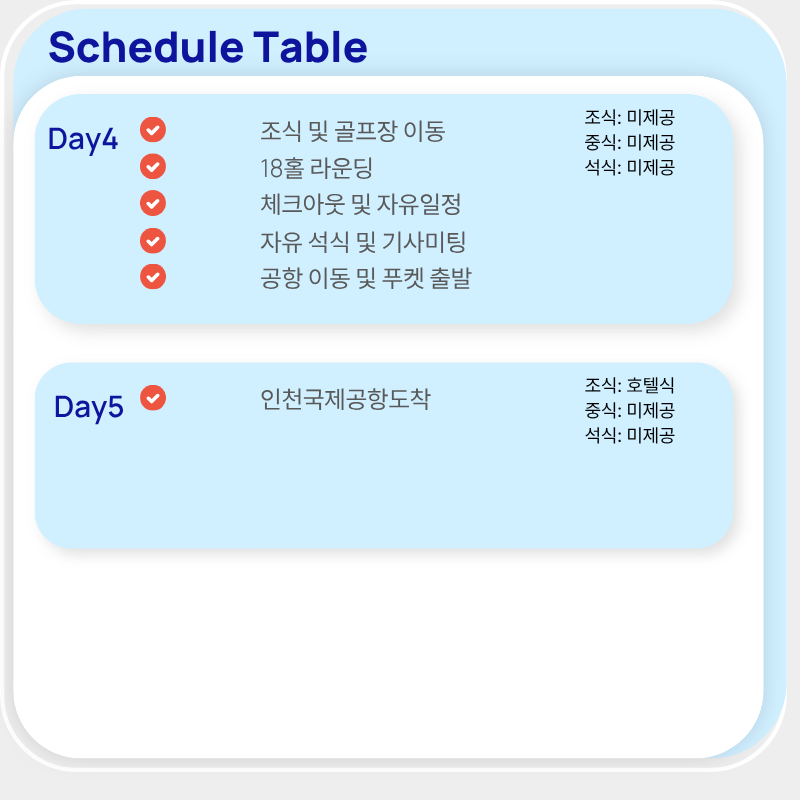 -객실 상황에 따라 진행 여부는 알수 있습니다.골프텔에서 로치팜 클럽하우스까지 도보로 이동 / 레드 마운틴 골프장 차량 탑승하여 이동 (10분 소요)