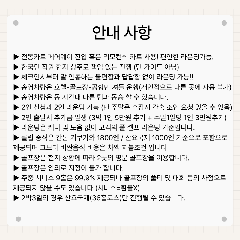🔊 다른곳보다 라운딩도 더 많이 할수있고 호텔도 싱글룸으로 제공!