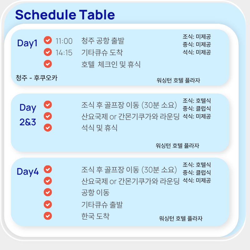 ✈️ 출발일 늦은 오후 출발- 도착일 라운딩 후 저녁 도착하는 편안한 항공패턴!
