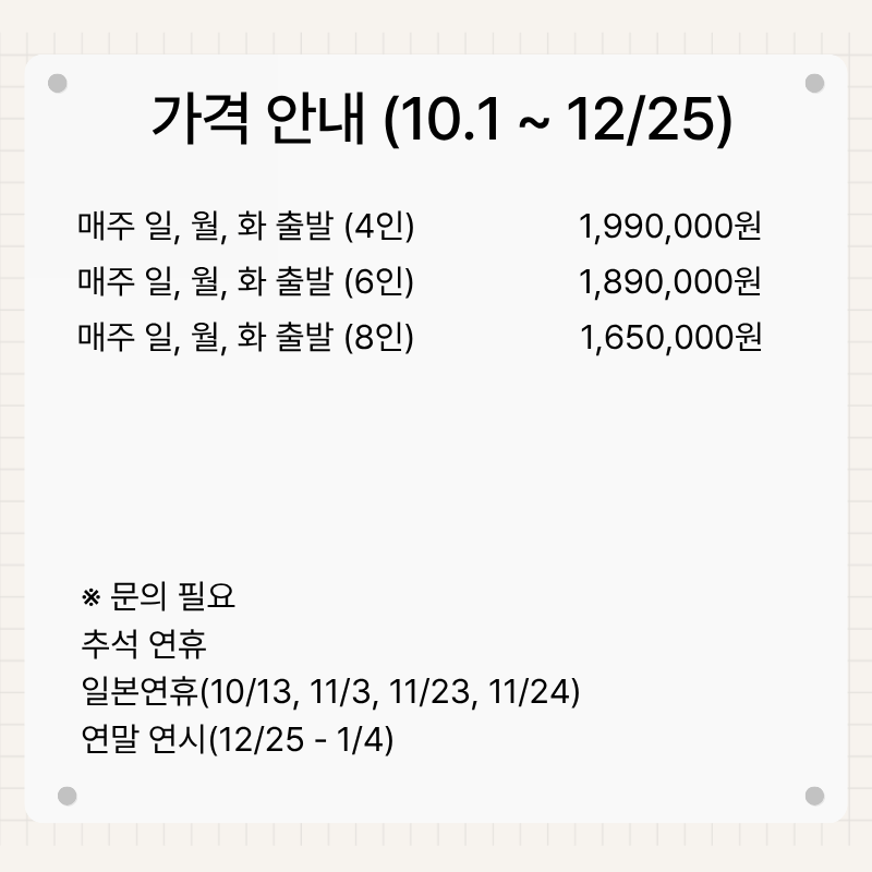 - 일, 월, 화 출발 189만원~ (6명 출발 기준)