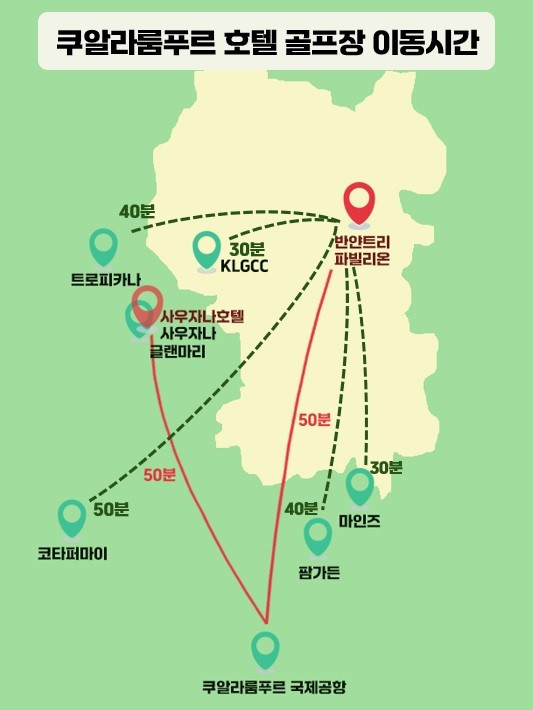 - 쇼핑 & 미식: 최고의 쇼핑몰 '파빌리온 몰'과 호텔이 직접 연결되어 있습니다. 라운딩 후 명품 쇼핑, 고급 레스토랑, 스카이 바 등을 편안한 차림으로 즐기실 수 있습니다.