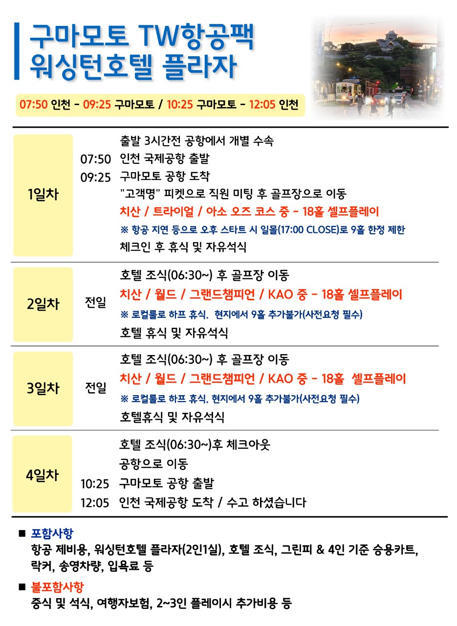 2️⃣ 인천 - 구마모토 KE . OZ . TW(항공팩)운영