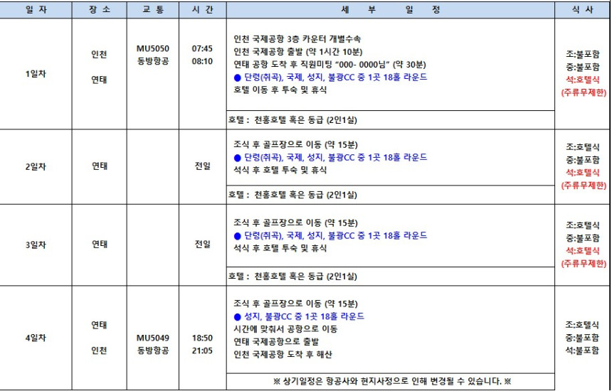 ▶ 일정 중 성지 또는 불광CC 1회 라운딩 무조건 포함입니다.