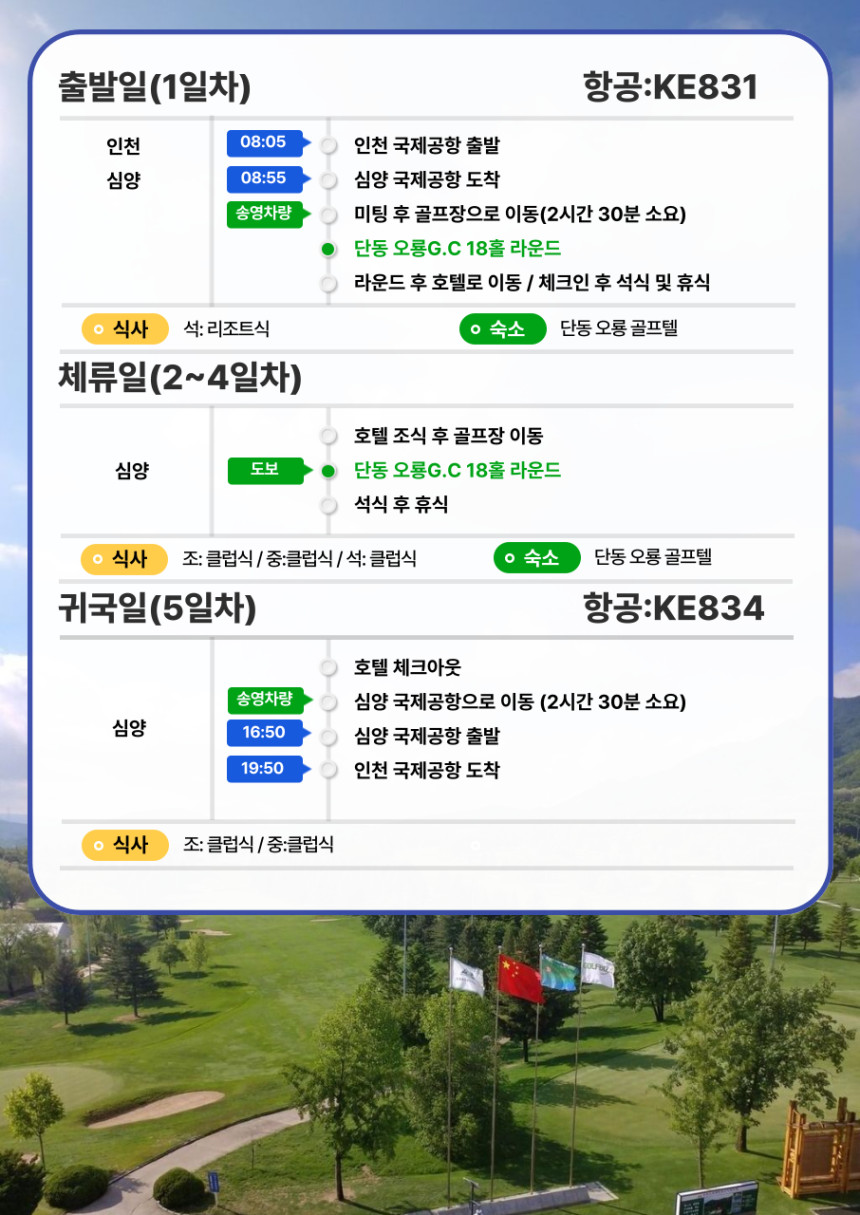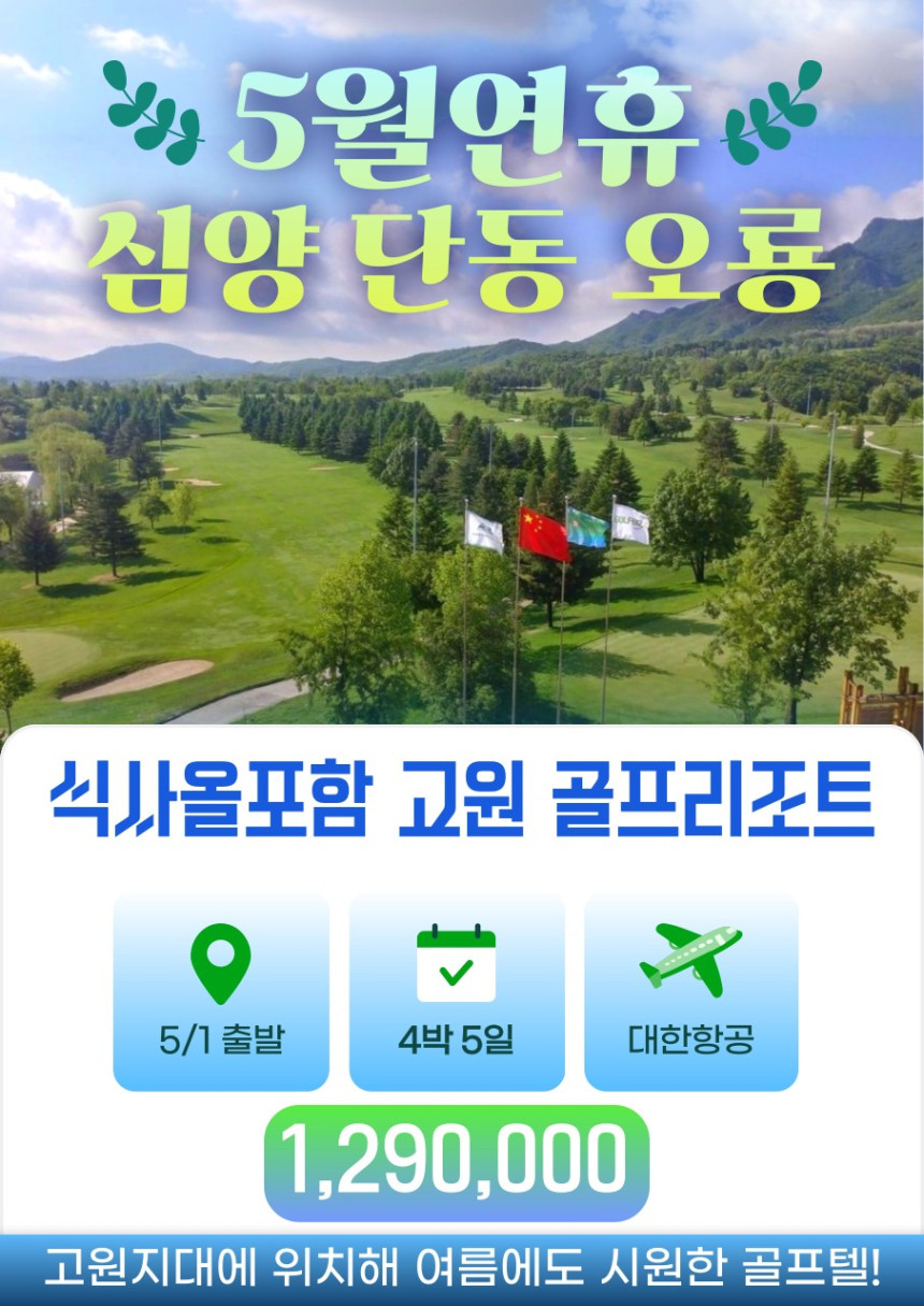 📢 5/1출발! 중국 심양 단동 오룡 골프리조트 🏌♂️