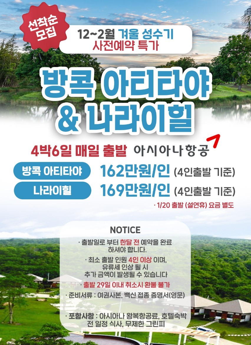 ♻️ 태국 방콕 나라이힐 4박6일 (아시아나항공)